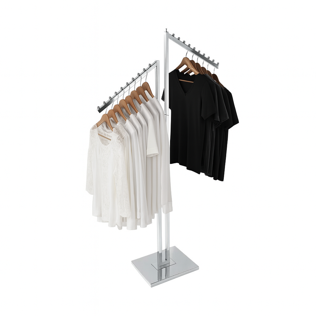 • Compact Footprint: Space-saving design allows for maximum garment display with minimal floor use.