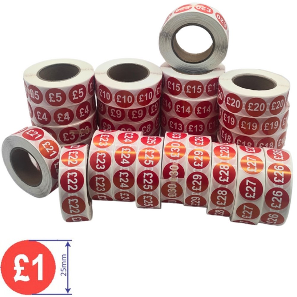 These 1000 x 25mm red price self adhesive stickers (£1-£30) offer an easy, professional way to label prices in your store. Whether you’re running a retail shop, market stall, or pop-up event, these stickers improve price visibility and make product pricing simple and clear for customers.