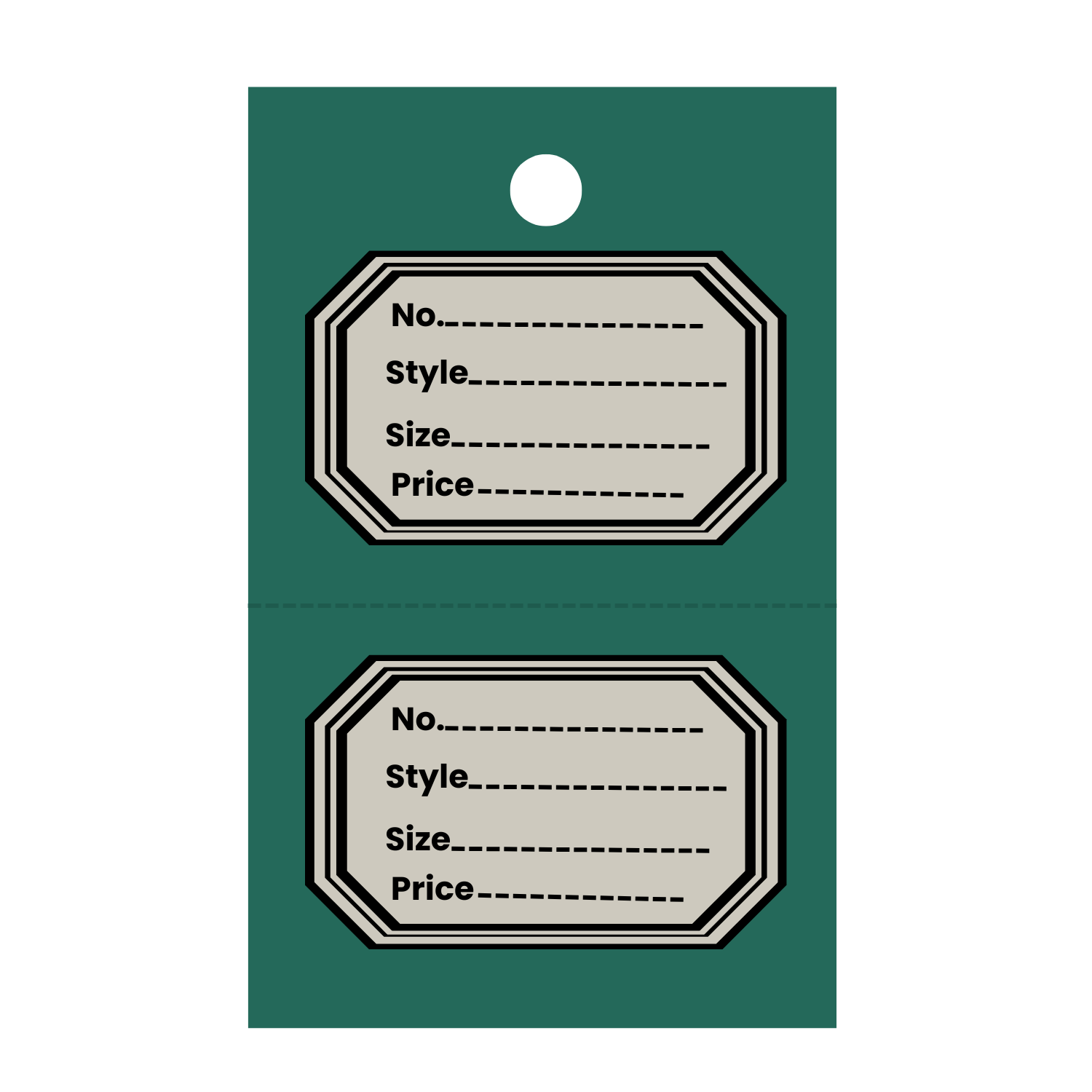 These Green 40x63mm unstrung perforated stock ticket are picture frame style unstrung stock tickets, ensuring all the vital information your back room staff will need to organise and find your stock is always kept clearly visible. Unstrung stock tickets are easy to see on your apparel merchandise, and easy to fill out for store colleagues.