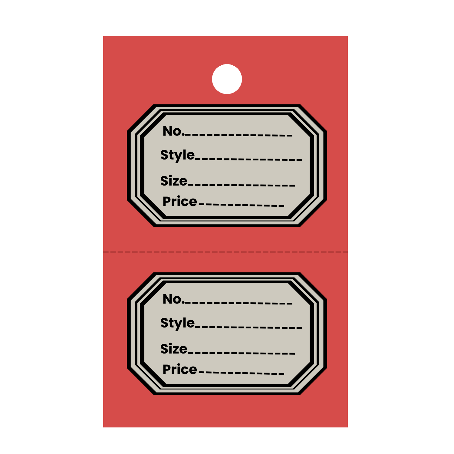 A two-part unstrung stock ticket allows you to easily tear off the bottom half to keep for your records, making managing and tracking stock a fast and easy process. These stock tickets are pre-printed with ‘No.’, ‘Style’, ‘Size’, and ‘Price’, so all you need to do is write the necessary product information on the dotted lines to keep your stock perfectly organised at all times.