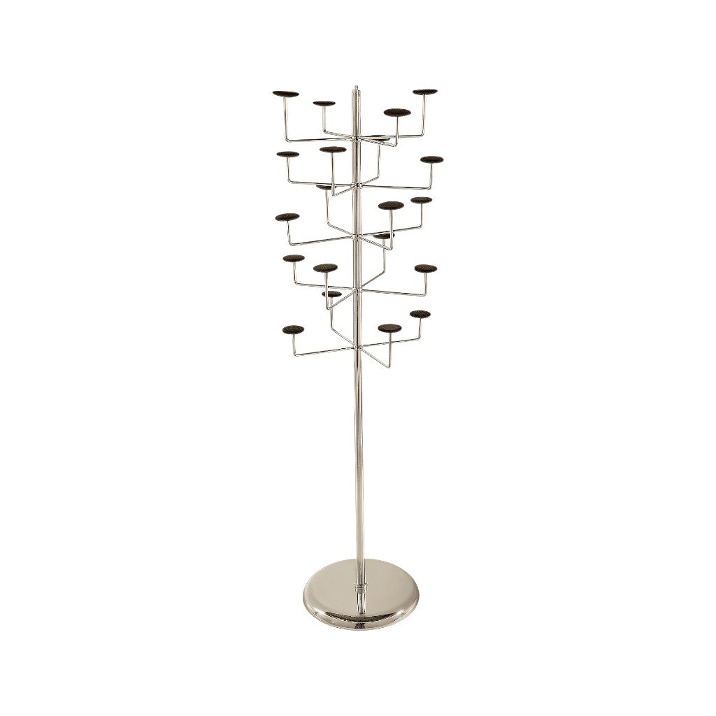Its weighted base ensures stability, even in high-traffic retail areas, while the chrome-plated frame adds a polished and professional finish. The cushioned discs help protect hat brims and crowns from wear while ensuring they stay securely in place. Ideal for boutiques, department stores, or fashion exhibitions, this free-standing hat rack ships flat-packed for convenience and assembles with ease. Showcase up to 20 hats with this chrome 5-tier millinery display stand.