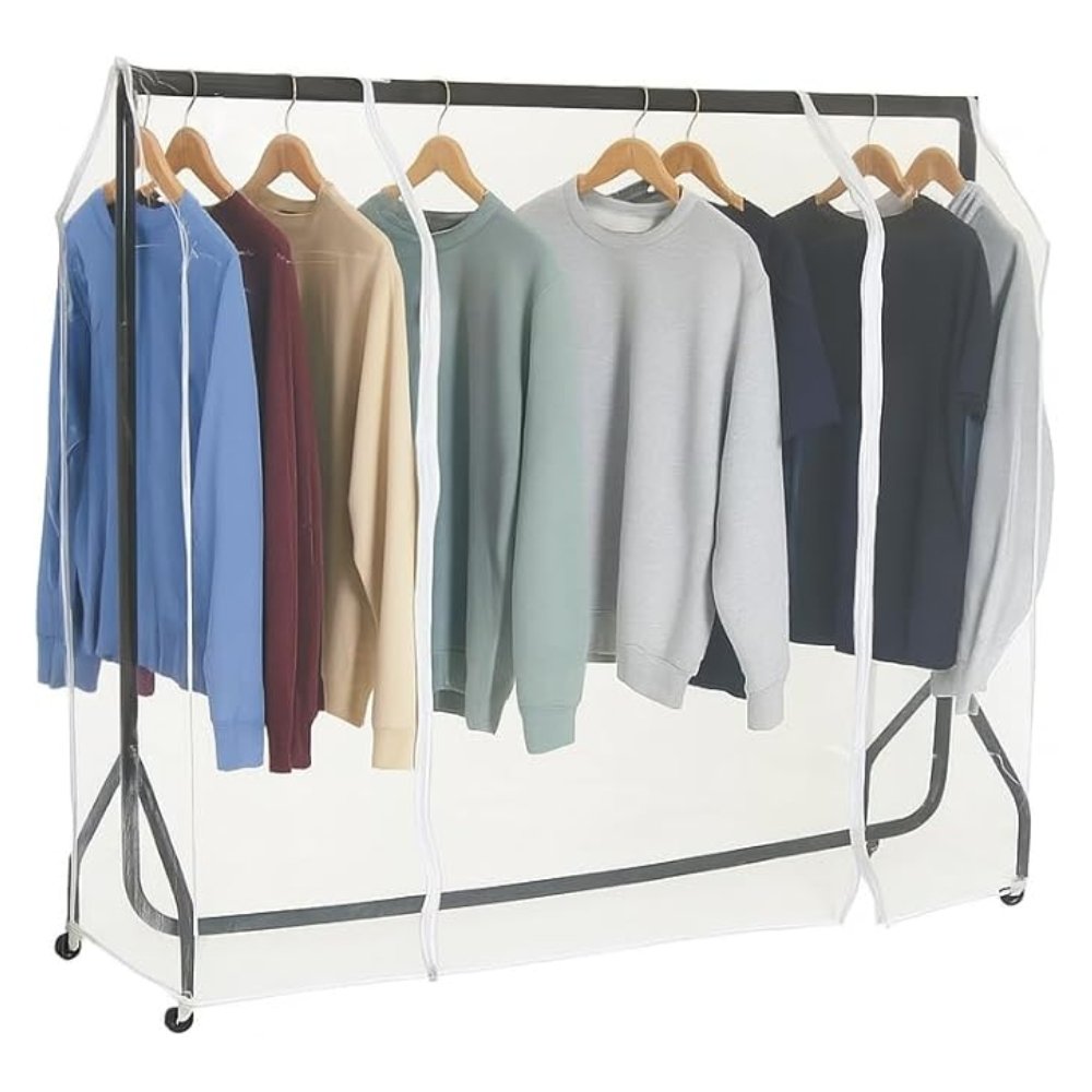 5ft Clear Clothes Rail Cover with Zip for Reliable Clothing Protection