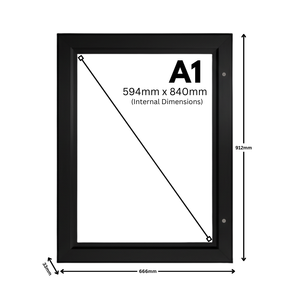 Supplied with secure wall fixings, the frame is easy to install on flat surfaces and suitable for indoor and sheltered outdoor applications. With its sleek silver anodised finish, this A1 poster case combines practicality, security, and a professional appearance to meet your display needs.