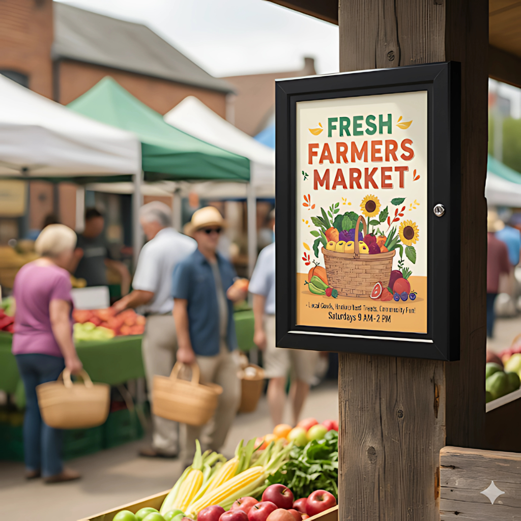 A1 Lockable Poster Case with 45mm Frame Profile and Wall Fixings. Secure aluminium case with tamper-proof lock, anti-glare cover, and easy wall mounting. Perfect for professional poster displays in schools, offices, retail, and public spaces.