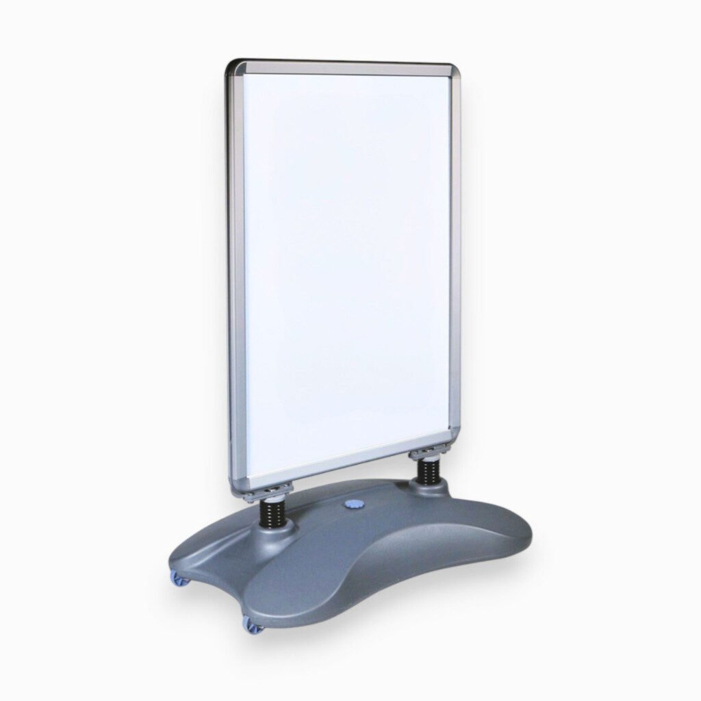 Its heavy-duty water-fillable base delivers unbeatable stability, keeping the sign firmly in place even in windy conditions. For extra resilience, the spring-mounted frame flexes with the wind, reducing the risk of tipping while maintaining a secure hold on your posters.