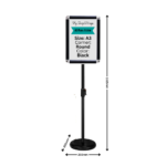 Whether you’re showcasing daily specials, event schedules, or directional signage, this floor-standing menu holder ensures a polished and professional display. A3 menu holder black is a rotatable snap frame that provides unmatched flexibility for quick content updates, while the adjustable height caters to diverse viewing needs.