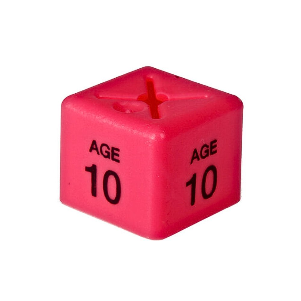 These Age 10 Pink Cubes are easy to use. Simply slide them over any type of metal hook hanger to indicate clothing sizes clearly on your hanging display. These Size Cubes are made with thicker plastic for rugged durability, making these Cubes a cost-effective purchase for your business as they will last long-term and can be reused over and over again.