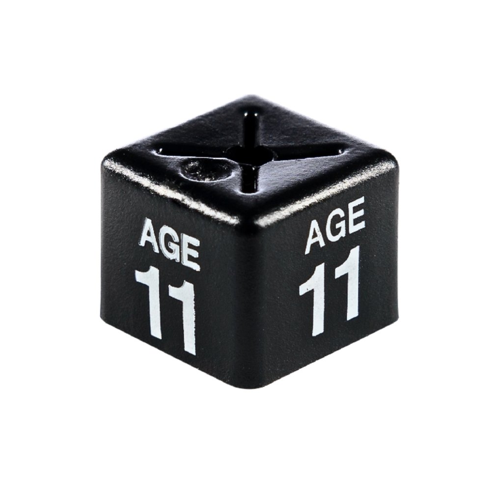 These Age 11 Black Cubes are easy to use. Simply slide them over any type of metal hook hanger to indicate clothing sizes clearly on your hanging display. These Size Cubes are made with thicker plastic for rugged durability, making these Cubes a cost-effective purchase for your business as they will last long-term and can be reused over and over again.