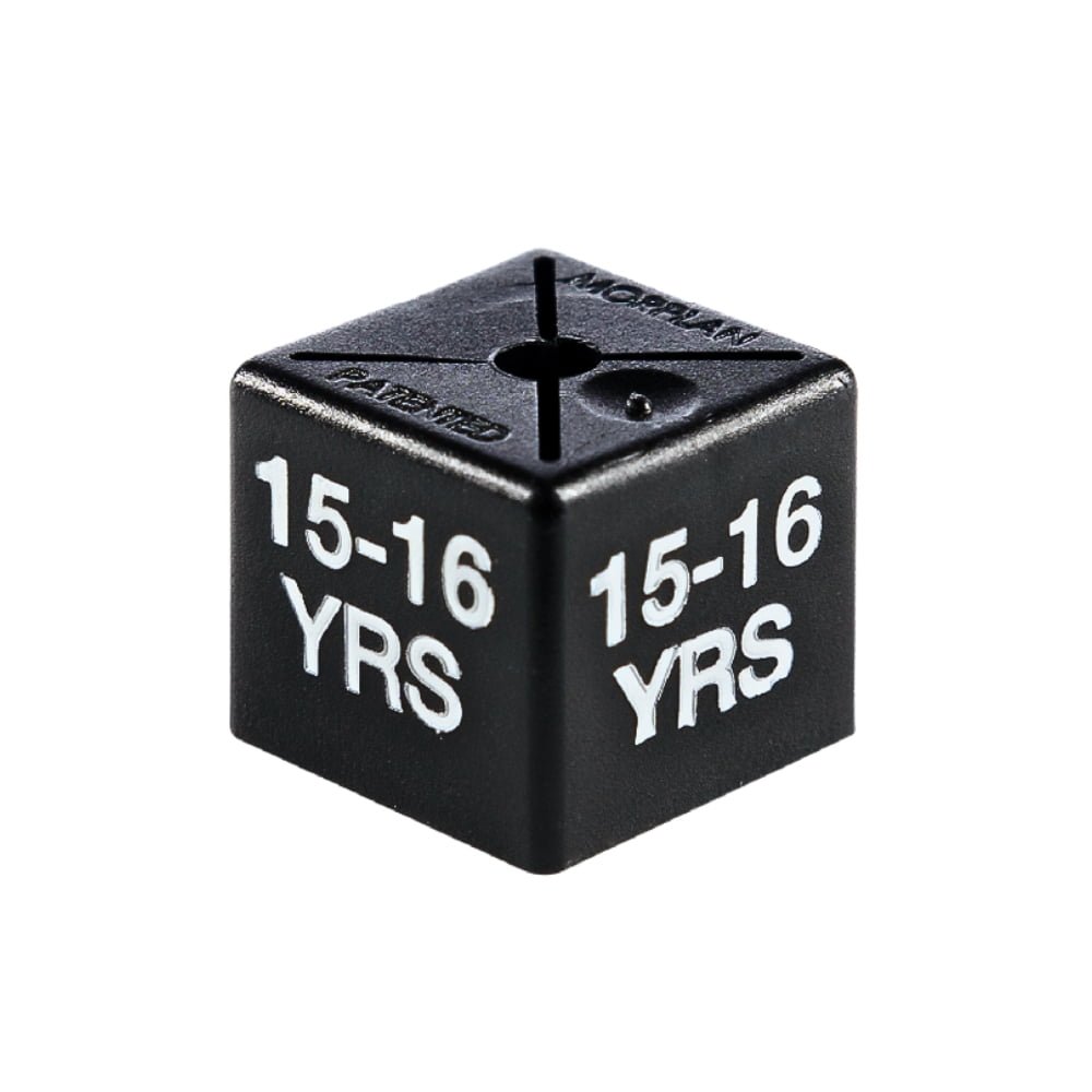 These Age 15-16 White on black Size Cubes are easy to use. Simply slide them over them over any type of metal hook hanger to indicate clothing sizes clearly on your hanging display. These Size Cubes are made with thicker plastic for rugged durability, making these Size Cubes a cost-effective purchase for your business as they will last long-term and can be reused over and over again.