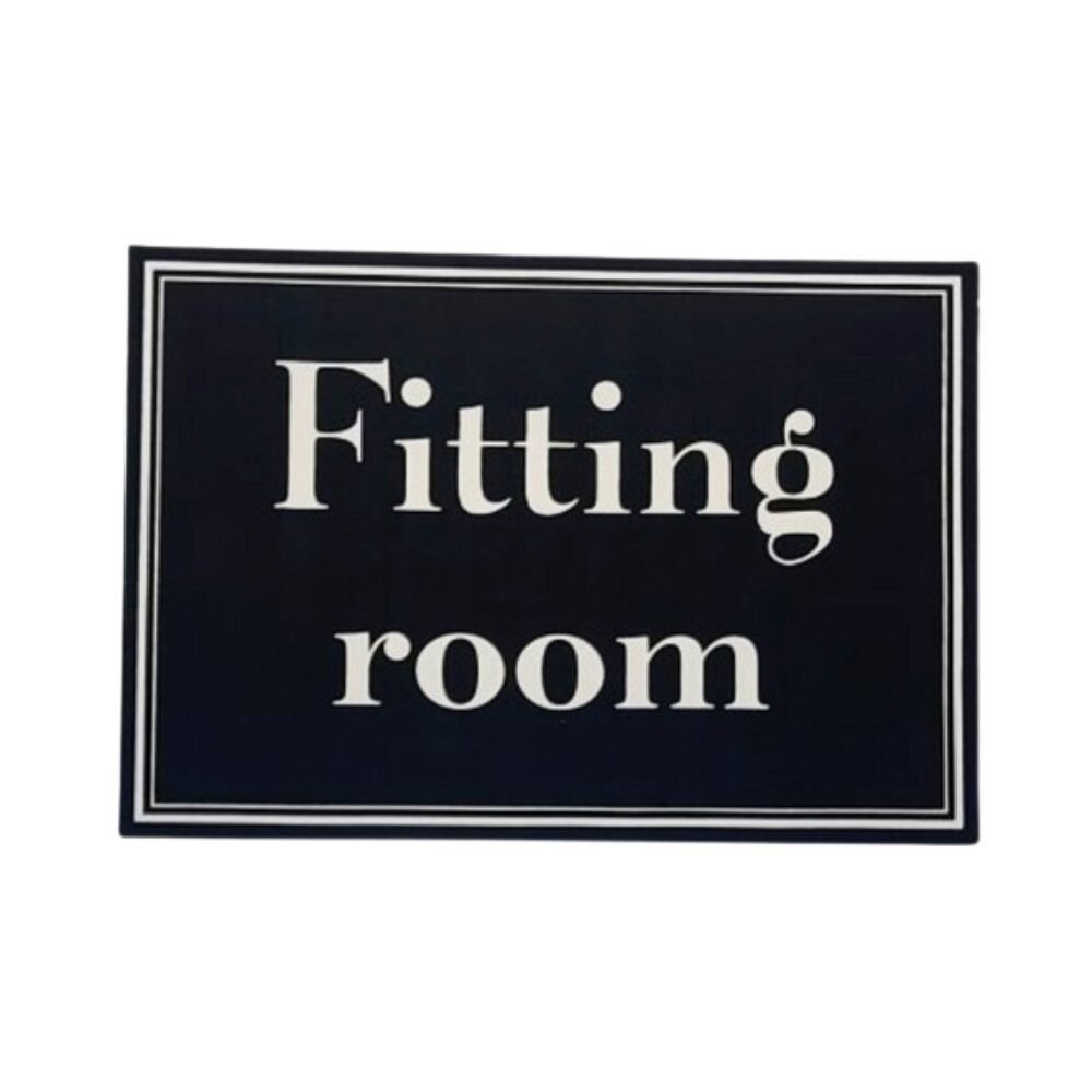 Introducing the Black Signage Board for FITTING ROOM from My Shopfittings Ltd! This stylish and practical sign measures 6cm x 13.5cm and features bold white, pink, and orange text on a sleek black background. The high contrast ensures the text is easily readable, providing clear guidance for your customers. Perfect for any fitting room area, this sign combines simplicity with elegance, enhancing the shopping experience in your retail space.