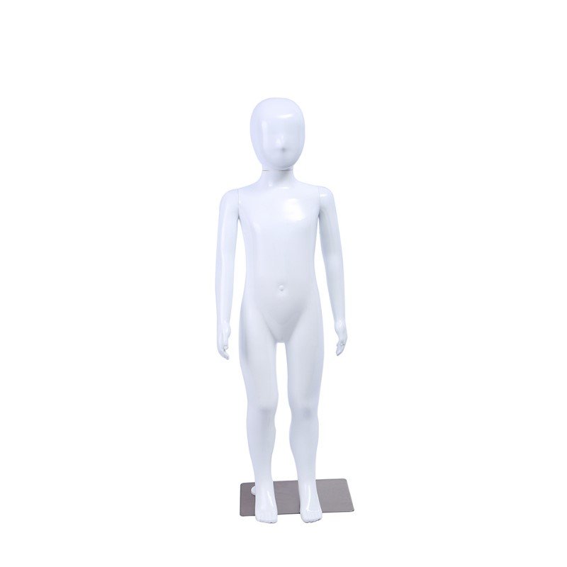 This child mannequin can be used to present any clothes, wig, ornament or shoes in shop windows. The mannequin consists of 4 assembled parts: head, torso with legs, left arm, and right arm. The head and the arms are removable and can be rotated by 360° and the face can be moved up and down by 60°. The whole child’s body is made of Eco-friendly PE. This material is not only environmental friendly but also more durable for use compared to the others like fiberglass. For more stability, the metal base and aluminum stand are well equipped at the bottom.