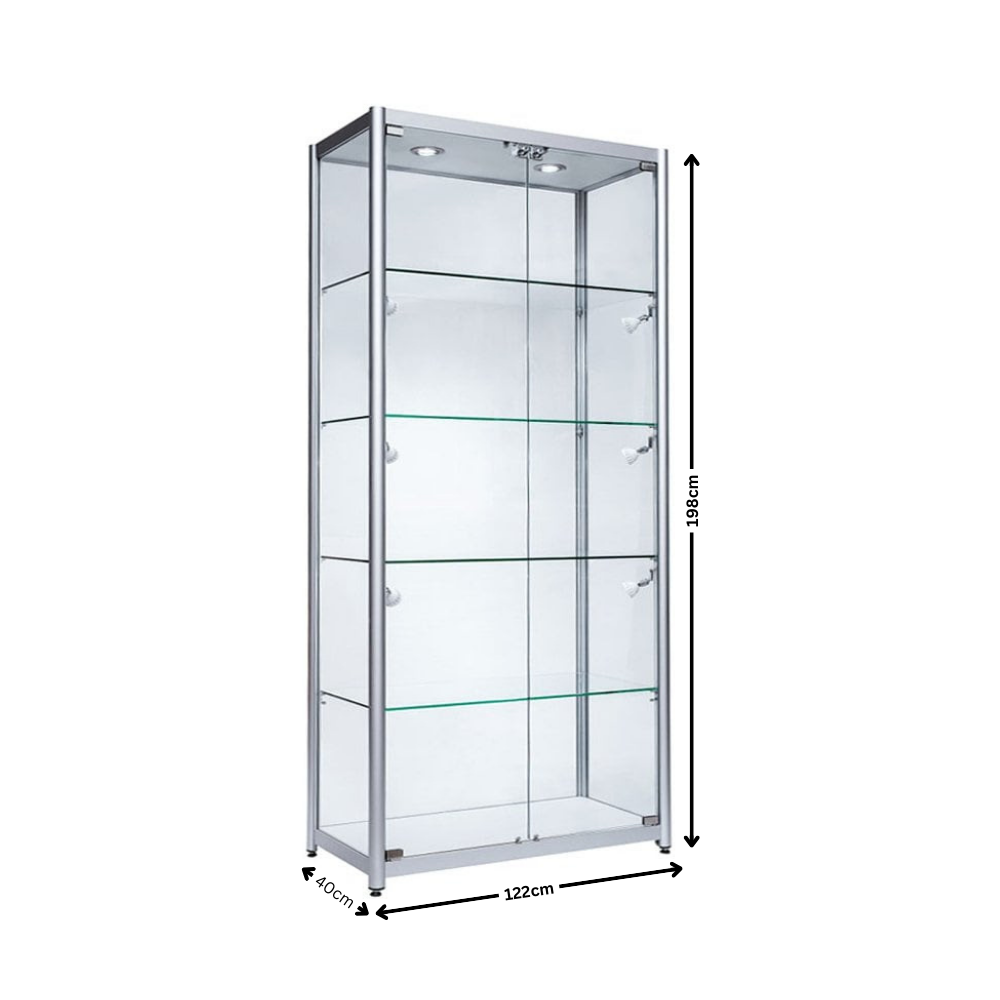 Aluminium Glass Display Cabinet – Double Doors | Modern Showcase for Retail, Exhibitions & Collectibles (198cm x 120cm x 40cm)