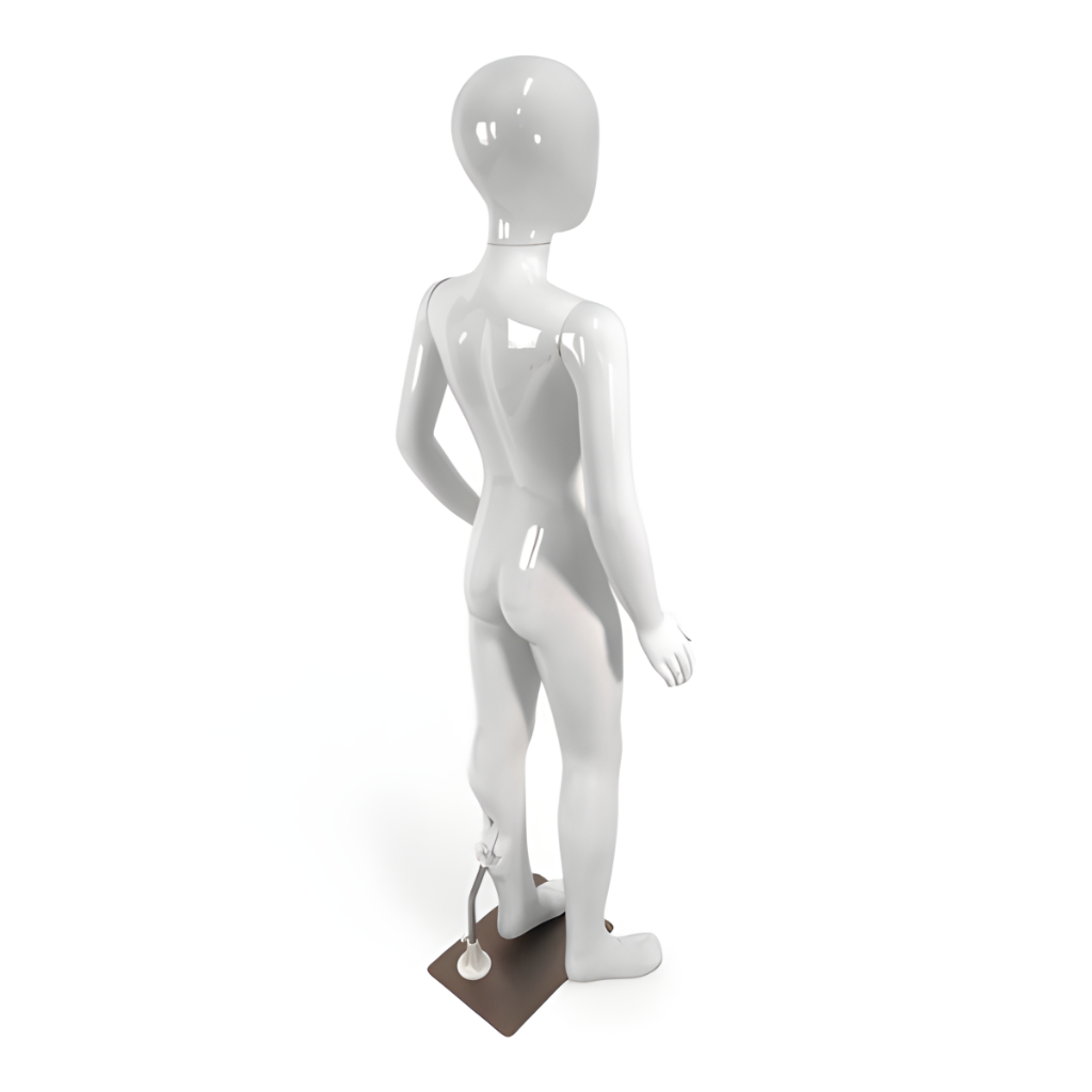 Whether you’re running a retail shop, boutique, exhibition, or photo studio, this faceless gloss white children’s mannequin offers a timeless, minimalist look that works with any branding or display theme. Easy to assemble and reposition, it’s the perfect display solution for creating impactful visual merchandising.