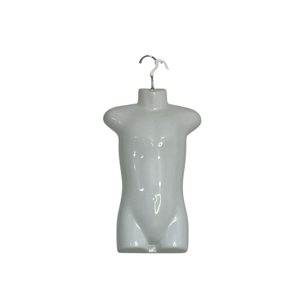 Enhance your kids’ apparel displays with this sleek Gloss White Hanging Body Form! This high-quality mannequin is perfect for showcasing children’s clothing, costumes, or accessories in retail stores, boutiques, or window displays. Made with durable, lightweight materials and a scratch-resistant gloss finish, it’s easy to install and space-efficient. Ideal for boosting visual merchandising and sales!
