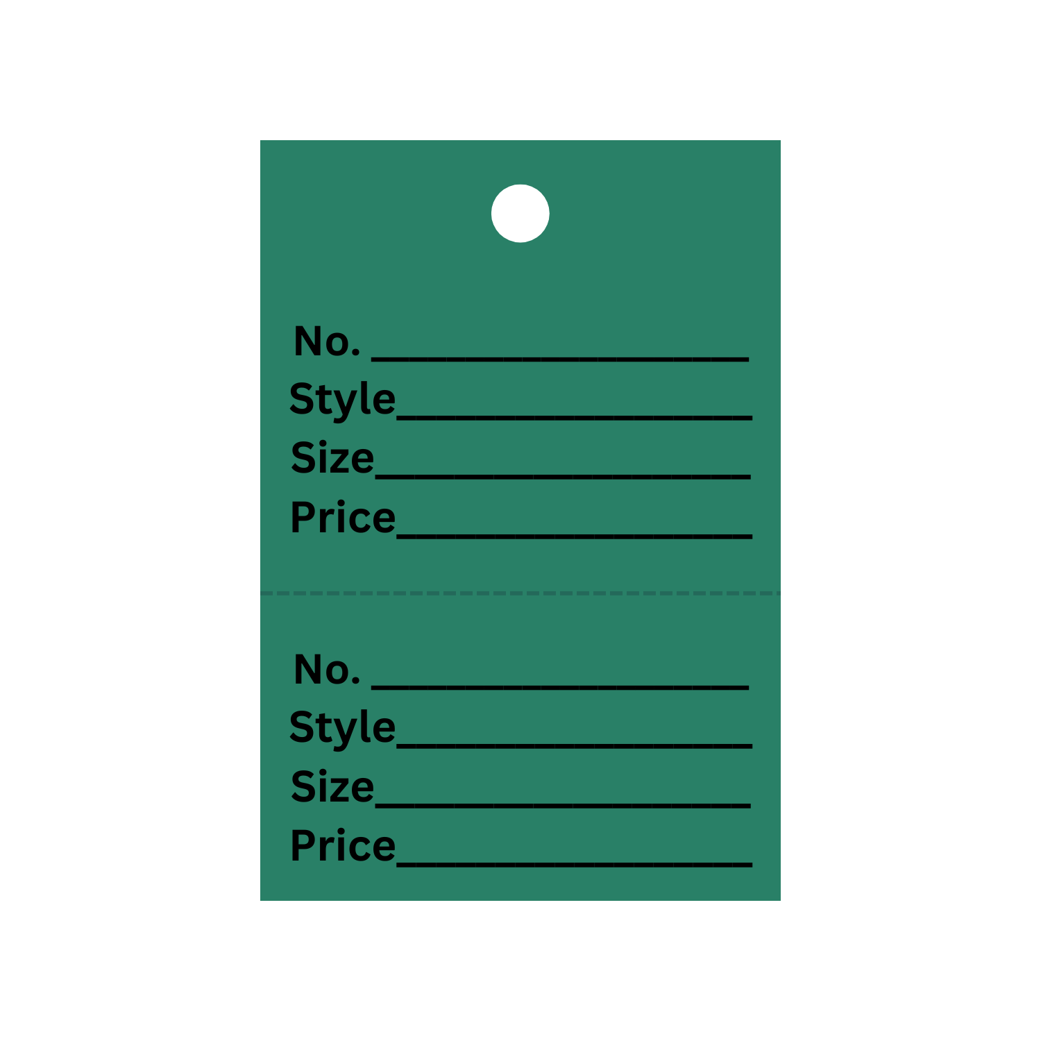 These Green 40x62mm unstrung pastel perforated stock ticket Green-Box 1000 Tickets are picture frame style stock tickets, ensuring all the vital information your back room staff will need to organise and find your stock is always kept clearly visible. Unstrung stock tickets are easy to see on your apparel merchandise, and easy to fill out for store colleagues.
