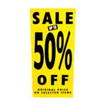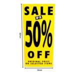 Maximize your retail promotions with the “SALE Up to 50% OFF Original Prices on Selected Items” sign. Featuring a bold yellow background and striking black text, this eye-catching poster is specifically designed to attract customer attention and drive traffic to your store. Ideal for retail displays, shop windows, or entrances, the Sale Up to 50% Off promotional sign ensures your discount offers stand out. Perfect for seasonal sales, clearance events, and special offers, this high-quality poster helps your business communicate value effectively and boost sales.