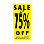 Elevate your retail promotions with the eye-catching “SALE Up to 75% OFF Original Prices on Selected Items” poster. Featuring a high-visibility yellow background and bold black lettering, this premium discount sign ensures your message stands out. Ideal for retail shops, storefronts, and promotional events, this poster highlights unbeatable savings of Sale Up to 75% Off, enticing customers to explore your offers. Perfect for clearance sales, end-of-season promotions, and special events, this marketing tool enhances your brand’s visibility and drives customer engagement.