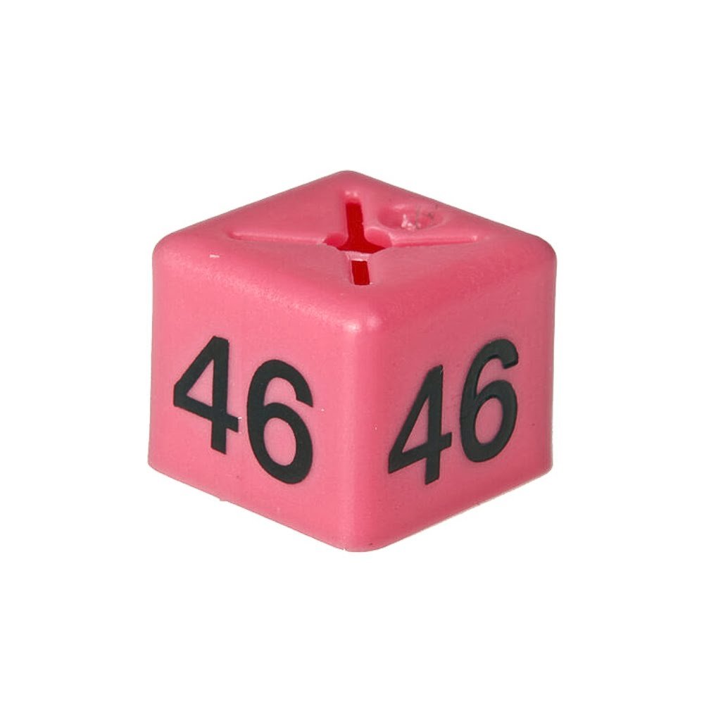 These ‘Size 46’ Size cubes – Pink are easy to use. Simply slide them over any type of metal hook hanger to indicate clothing sizes clearly on your hanging display. These Sizing Cubes are made with thicker plastic for rugged durability, making these Sizing Cubes a cost-effective purchase for your business as they will last long-term and can be reused over and over again.