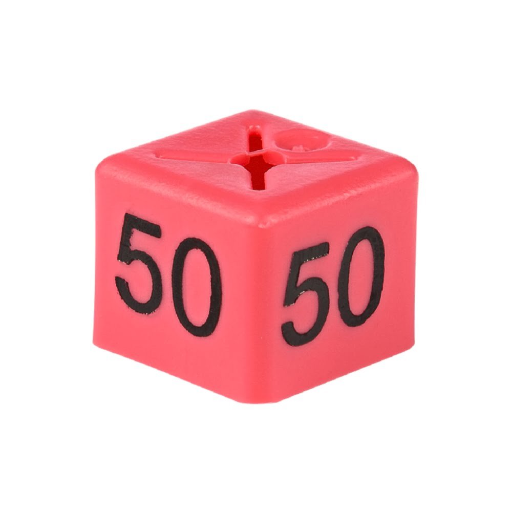 These Size 50 Size cubes are easy to use. Simply slide them over any type of metal hook hanger to indicate clothing sizes clearly on your hanging display. These Size cubes are made with thicker plastic for rugged durability, making these Size cubes a cost-effective purchase for your business as they will last long-term and can be reused over and over again.