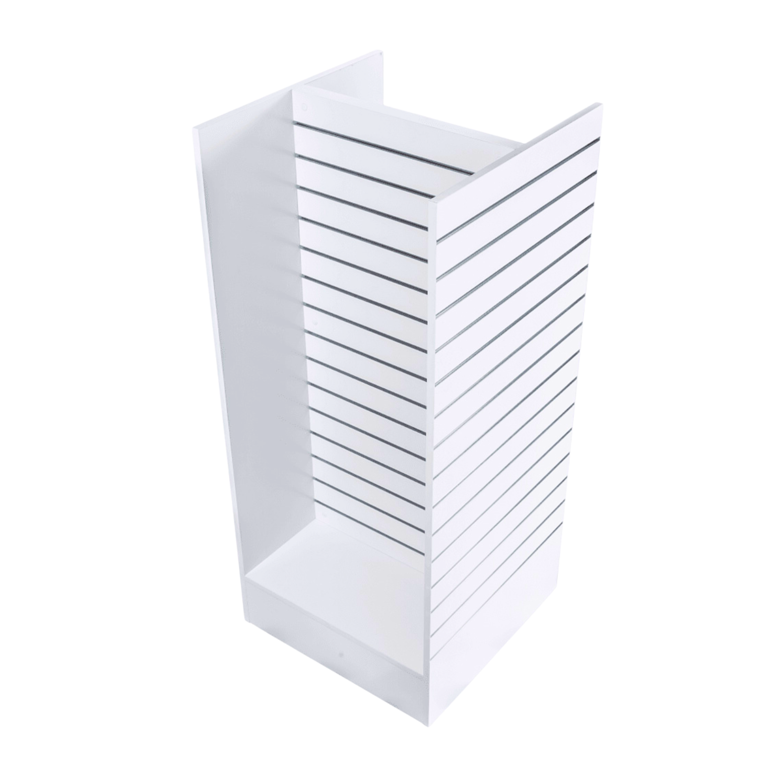 My Shopfittings Slat H Display unit – White is the perfect shop floor merchandising display. The unit comes in a white wood finish, Stylish and easy to assemble . Made from MDF, this Slat H Display unit – White unit gives you a robust, durable display that will last for a long time. The unit comes flat-packed and is easily assembled with all the necessary pieces included to put it together. All you need are a few basic DIY tools.