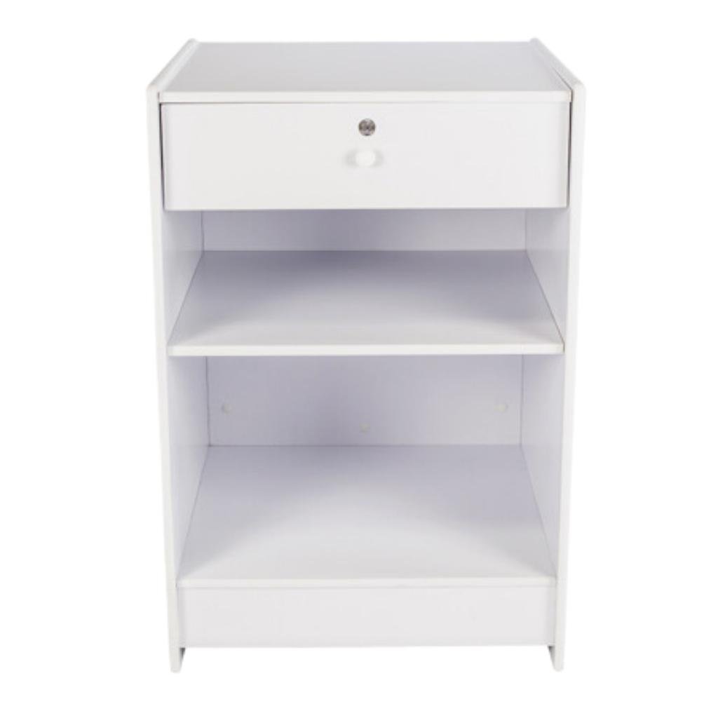 Brand New White Shop Till Block With Lock Counter Very Sturdy Construction with Quality White Laminate Finish 600mm wide x 600mm deep x 900mm high Large Drawer and Shelf Lock on Drawer Ideal to fit with our Corner Counters to create an “L”, “U” or “O” shape. Attractive, durable, and versatile, create a fabulous and functional look for your shop at surprisingly low cost. We have many other products in this range available to match, please see in our shop for more details. Please note this product is heavy and requires basic flat pack assembly skills. All fittings and instructions provided.