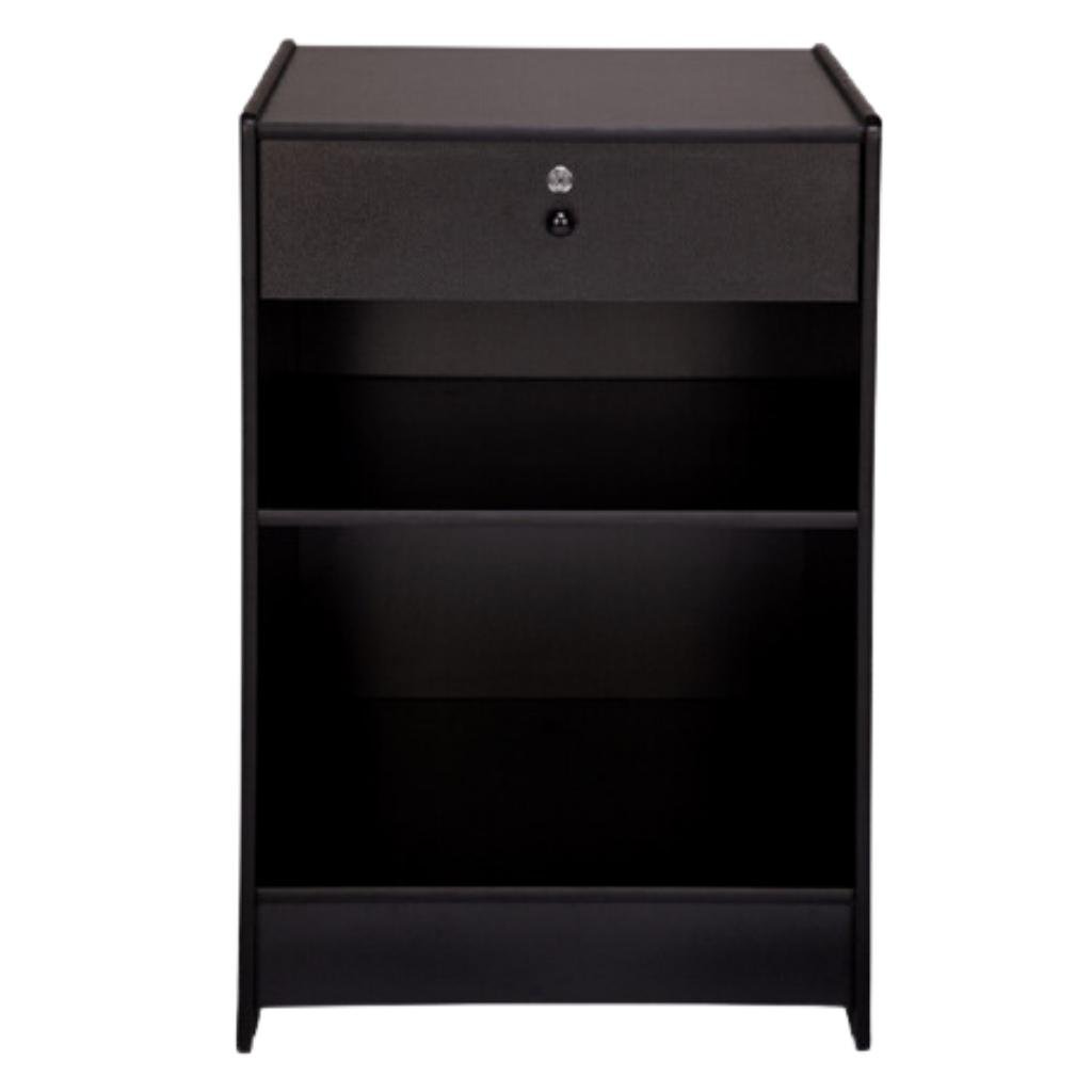 Brand New Black Shop Till Block With Lock Counter Very Sturdy Construction with Quality Black Laminate Finish 600mm wide x 600mm deep x 900mm high Large Drawer and Shelf Lock on Drawer Ideal to fit with our Corner Counters to create an “L”, “U” or “O” shape. Attractive, durable and versatile; create a fabulous and functional look for your shop at surprisingly low cost. We have many other products in this range available to match, please see in our shop for more details. Please note this product is heavy and requires basic flat pack assembly skills.