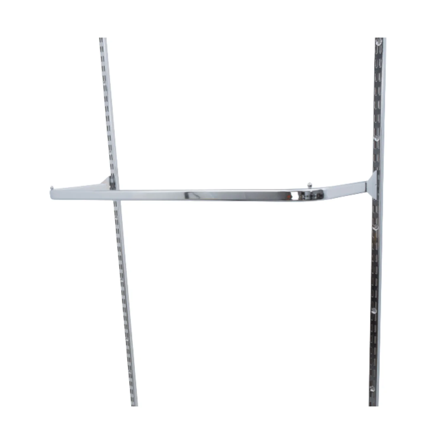 The D-Rail for Twin Slot Upright is a durable 1000mm steel rail with a polished chrome finish, designed to fit 32mm pitch systems. With a 30mm x 15mm tube, it offers a strong and stylish solution for hanging garments. Ideal for use in retail displays, showrooms, and storage setups.