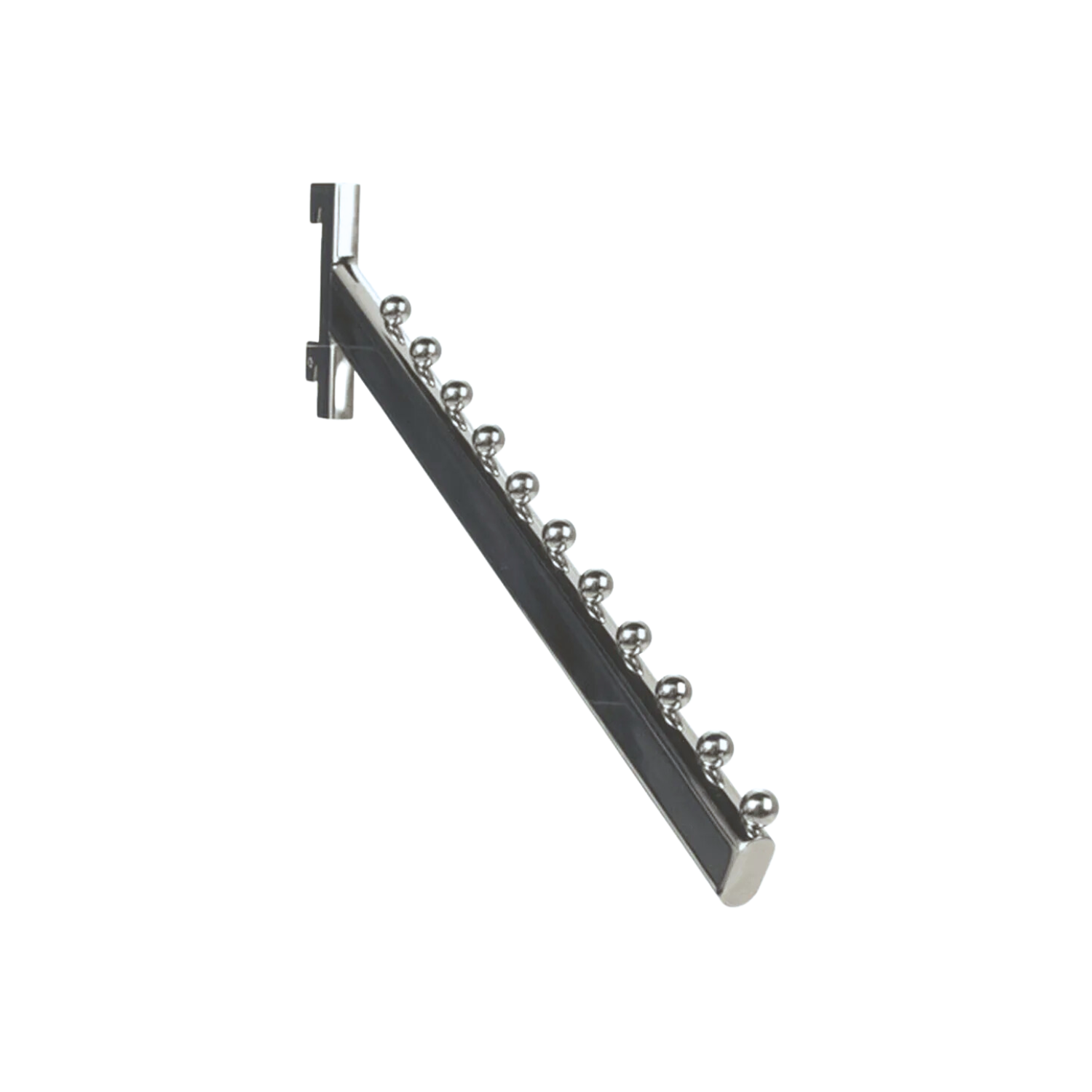 The Twin Slot Waterfall Arm is a practical and stylish display solution, perfect for showcasing garments in a clean and organized way. With 12 fixed notches along its 400mm length, it allows you to hang multiple items at a descending angle, creating a visually appealing waterfall effect that’s ideal for retail environments.