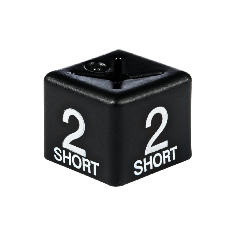 These White on Black Size Cubes ‘2 short’ are easy to use. Simply slide them over any type of metal hook hanger to indicate clothing sizes clearly on your hanging display. These Size Cubes are made with thicker plastic for rugged durability, making these Size Cubes a cost-effective purchase for your business as they will last long-term and can be reused over and over again.