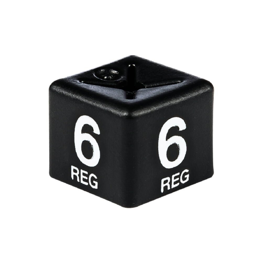 These White on Black Size Cubes ‘6 reg’ are easy to use. Simply slide them over any type of metal hook hanger to indicate clothing sizes clearly on your hanging display. These Size Cubes are made with thicker plastic for rugged durability, making these Size Cubes a cost-effective purchase for your business as they will last long-term and can be reused over and over again.