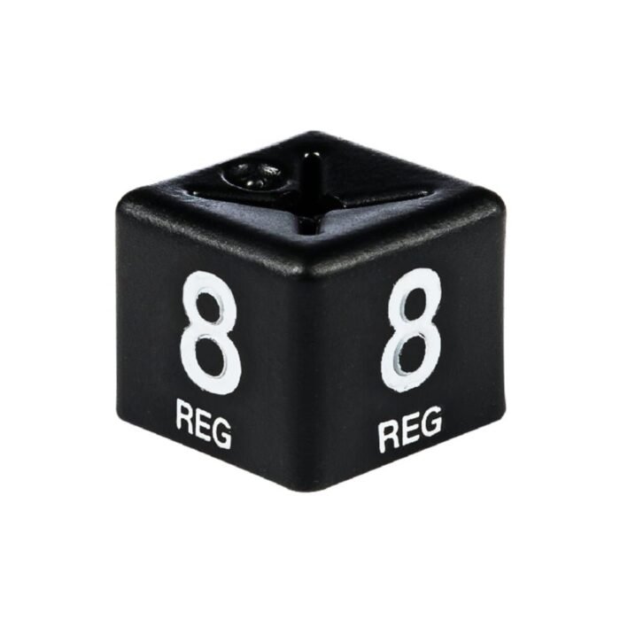 These white on black size cubes ‘8 reg’ are easy to use. Simply slide them over them over any type of metal hook hanger to indicate clothing sizes clearly on your hanging display. These Size Cubes are made with thicker plastic for rugged durability, making these Size Cubes a cost-effective purchase for your business as they will last long-term and can be reused over and over again.
